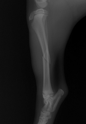 家の中で遊んでいると「キャイーン」という悲鳴と共に片方の足を地面に付く事が出来なくなり来院されました。レントゲンを撮り調べてみると骨折していることが判明。 手術をして元の状態に骨を整復しました。 手術後の経過もとてもよく元気も、元に戻りましたが、家の中で遊ぶのも気をつけましょう! 前の記事 次の記事