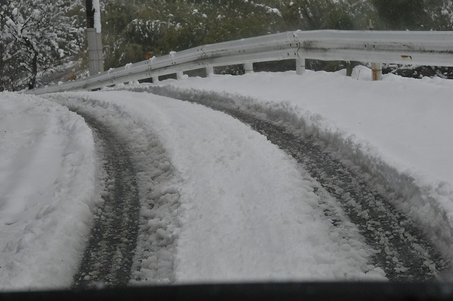 道路には「わだち」が出来上がっていましたのですでに先客がいらっしゃるのでしょうが、我が家の自家用車ではこれ以上先に進むことが出来ないような積雪でした。